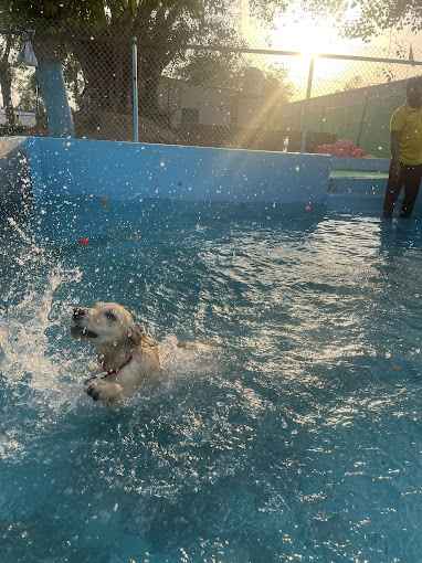Cage free boarding, swimming pool, indoor and outdoor playgrounds. - We provide fresh home cooked veg/non-veg food. - Vaccination certificate is mandatory. - We do not board females on heat. - Open all seven days 7am. -Pick and drop available at RS.15 per km (to and fro distance counted as 1 trip)