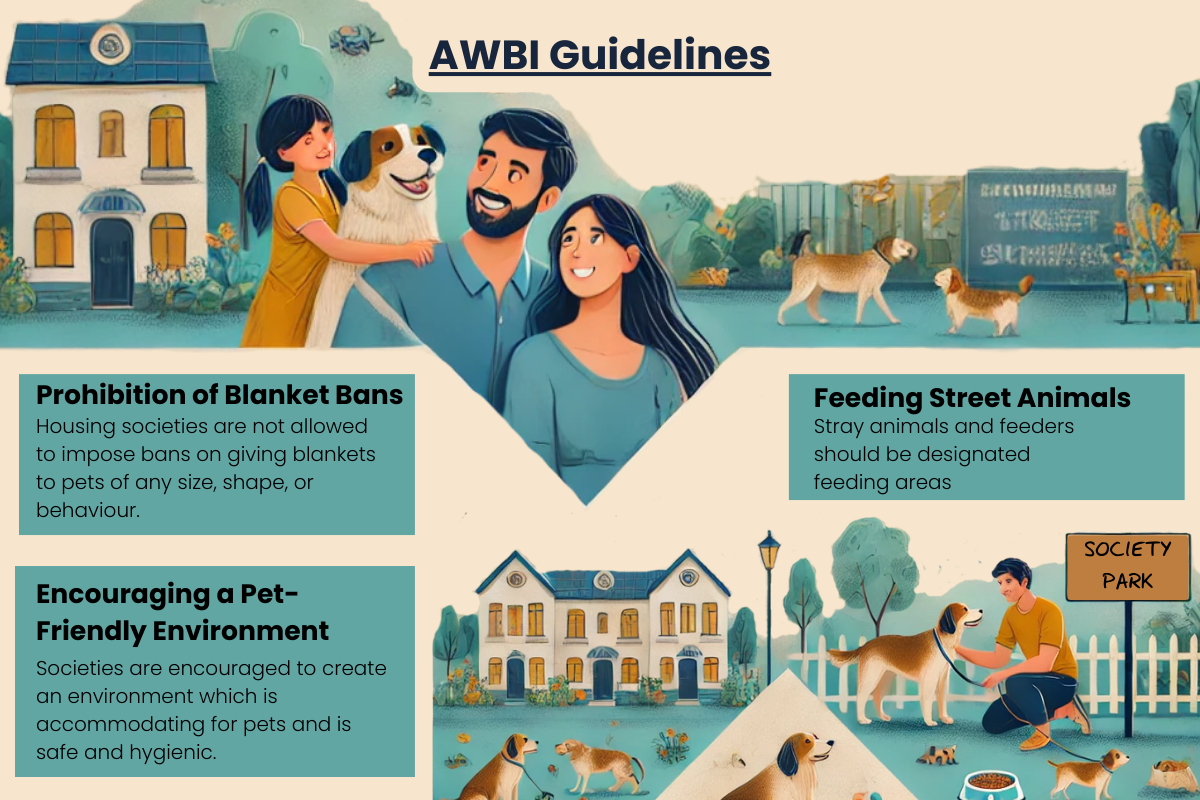 The Animal Welfare Board of India provides important guidelines for pet ownership in housing societies. These include: